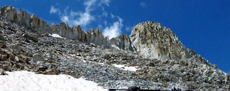 A solo attempt in 2009 redone in 2013 to nab both peaks. Castle and Conundrum are fourteeners visible from home. Unique among most mountain routes, snow fields are present well into the summer on the descent from this pair affording uphill trekking with crampons and fun downhill glissading with ice ax arrests.