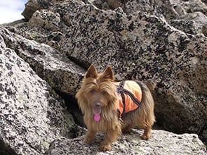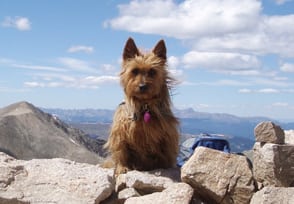 An Aspen Times article announced that Emme, our Australian Terrier, was going to attempt four of the state’s peaks over 14,000’ as a fundraiser for the Animal Aspen Shelter and the Canine Health Foundation. She succeeded.summiting Mt. Democrat, Mt. Cameron, Mt. Lincoln & Mt. Bross all in one day.