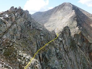 However the climbing approach to the Mt. Evans summit takes the more circuitous and challenging route that summits Mt. Bierstadt first, then traverses a ridge called the Sawtooth all the way to the Sawtooth.