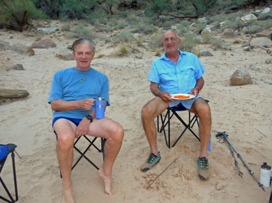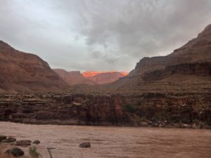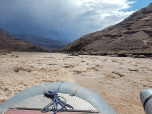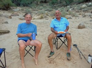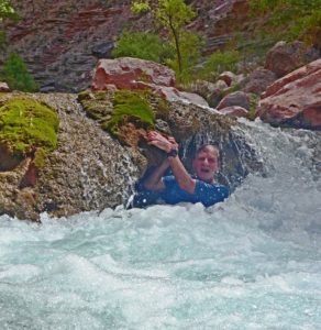 The water was muddy from lots of recent rainfall. We recommend Grand Canyon Expeditions – they really have this figured out. About 10 people per raft, two rafts, great food stored on ice under the raft somewhere for the whole 8 days (mahi mahi, steaks for dinners, eggs and pancakes for breakfast, great salads for lunches – amazing. Bring your own booze – the Black Box red wines were surprisingly good.