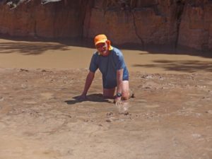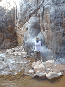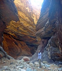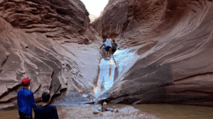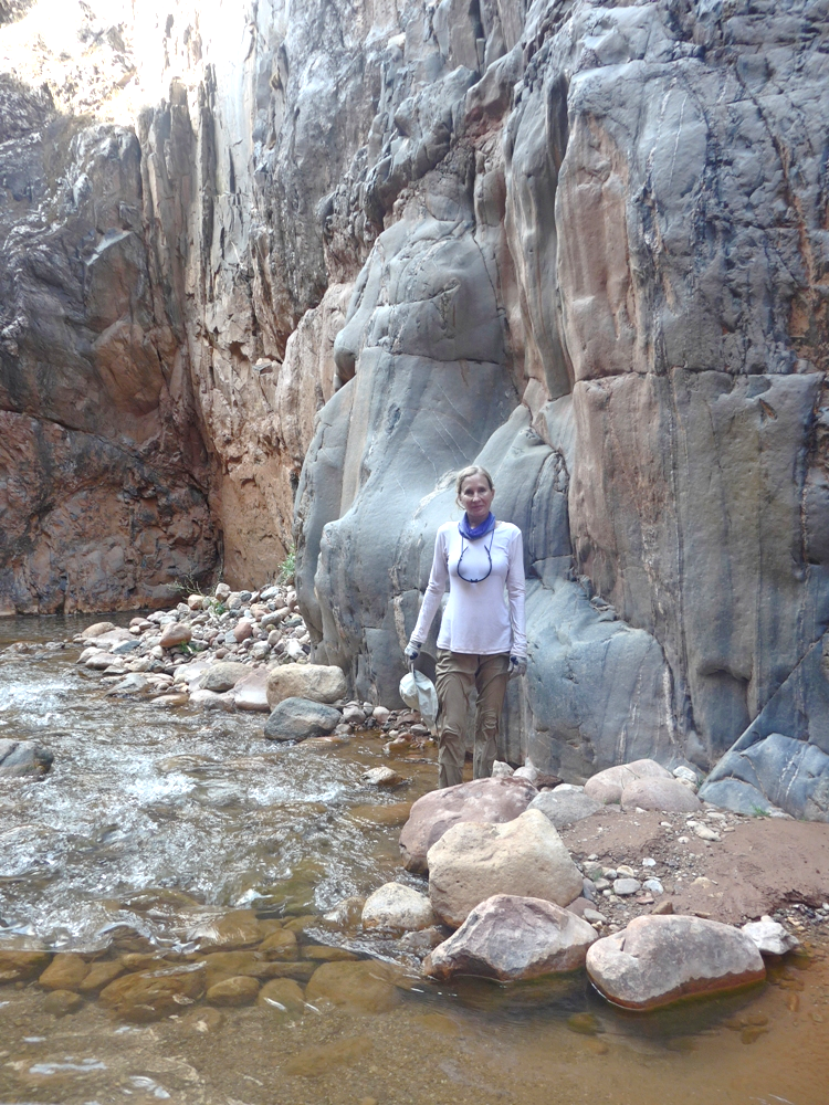 Here Mona is heading into a slot canyon.