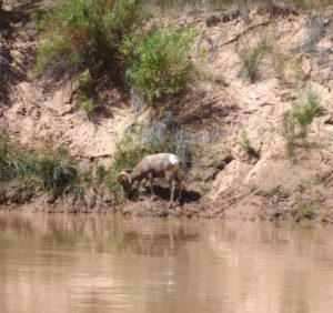 We saw them in the upper parts of the Canyon which starts at about 3500 feet above sea level, but somewhere around 2500 feet they disappeared. The Canyon bottoms at 1500’. We see the sheep outside Denver at 5000’ and in the lower parts of fourteeners at about 10,000 feet so that may be the elevation range they like.