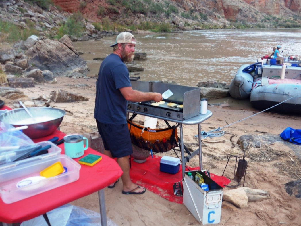 Duffy cooking breakfast. He could do just about everything and so did his wife KJ. Their mom was along too – this is a multi-generational canyon/river family.