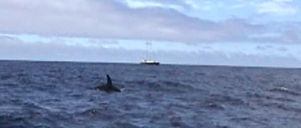 This was our last dive of the week – and if to say a friendly goodbye, one of the Orcas breeched, faced away from us and slowly submerged, waving his huge tail at us as he went.