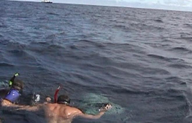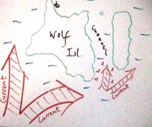 I had both hands free to hold on, but Brett had only one hand to hold on to the boat line and with the other he was clinging to his backpack and scuba tank that was half off of him. As I looked back at him I saw his head was submerged by the water pressure with just one arm showing, clinging to the side line, for the longest time. He got his head above water, briefly surveyed the situation, heard me shouting “we’re not making forward progress” and he made the snap decision to jettison his equipment – weight belt, tank , buoyancy pack – and the instant he let go of it, the boat lurched forward towards safety. We assessed later that his gear had essentially been acting as a sea anchor and by letting go; we got a kick forward which was enough to get out of the death grip.