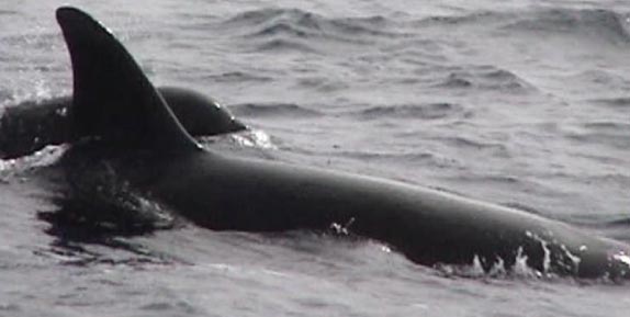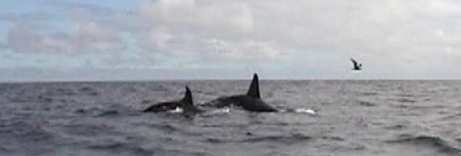Orcas are black and white – and you can see one passing right under us in the photo below – great excitement.