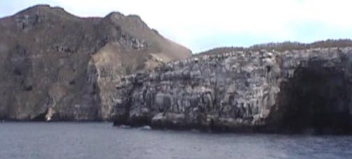 Then there is the treacherous Darwin’s Arch that looks almost adjacent to Darwin Island but it sits just above the surface on an underwater plateau. The steep barnacle covered walls drop off to the deeper ocean. The plateau is loaded with stones and boulders right at the surface, which combined with the strong currents makes for a highly dangerous churn into which no boat must ever venture, the risk being chewed up by the churn against the rocks.
