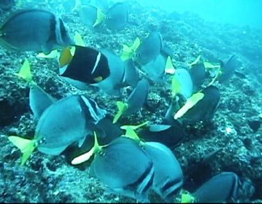 At first we find fairly typical diving as we pass through 40’ through large schools of yellow-tails, sting rays and a Galapagos sea turtle waving to greet us.