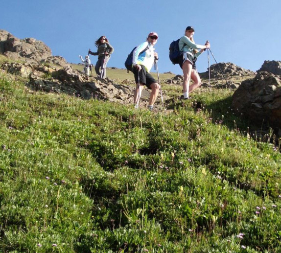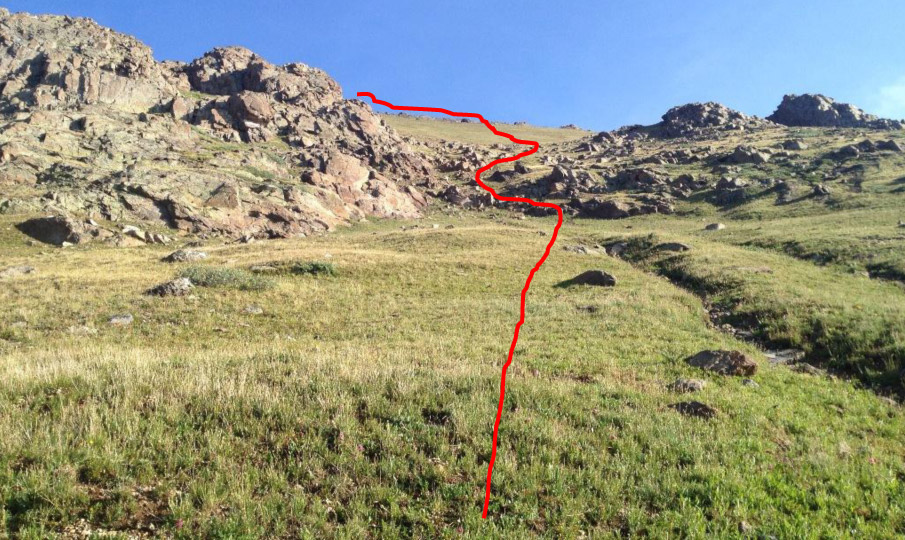 - Hike to the mines and immediately after them, look up – see a grassy slope with a few zig-zags up to the ridge a good half mile away from the saddle.
