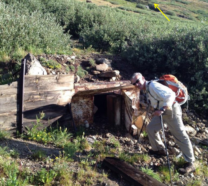 New way: up to the ridge earlier, right after the mine. Imagine climbing into a hole that small!