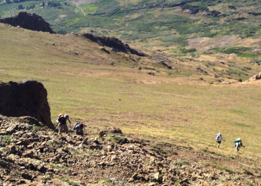 1- Steep: For the first third of the way, we followed the grass and made good time up the steepening terrain.