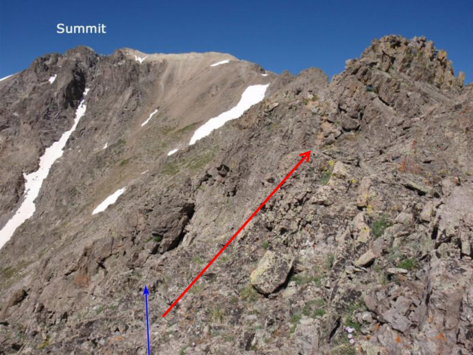 Turn up at waypoint Lat: 39.04121, Long: -106.58011 - Hike the top of the ridge – great Class 1-2 walk, beautiful with some exposure.
