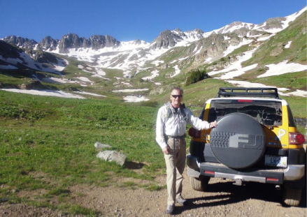 Rick, after driving the FJ to the trailhead in American Basin with the gorgeous caldera in the background