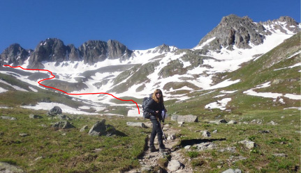 The route is normally a clear path, at times steep and at times loose, but this early in the year we knew we were headed into snow.
