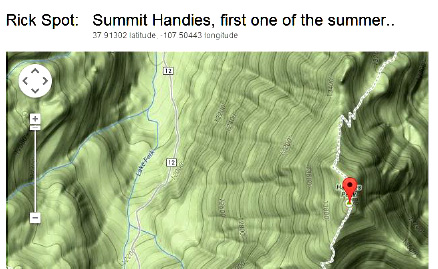 Rick sending Spot satellite message from the summit – which shows up in email as below.