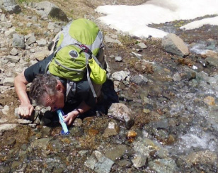 … and then decided to try his new “LifeStraw” – an amazing device every hiker and climber should have – it weighs nothing, has a filter inside good for something like 1000 drinks and is great in a pinch if you run out of water.