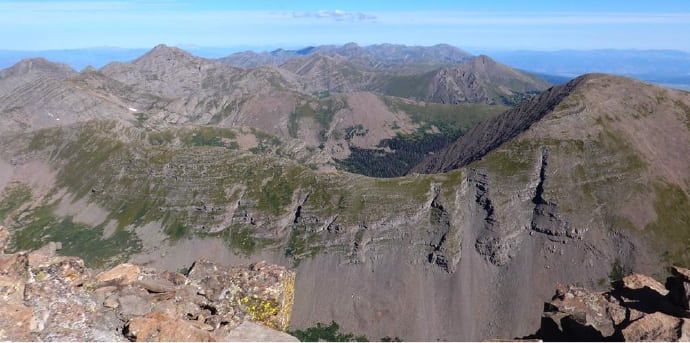 Camping, climbing and summiting the peak offer stunning views across the valley of Crestone Peak and Crestone Needle, two of Colorado’s hardest Fourteeners, and Kit Carson Peak.