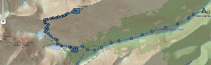 First climbed by a surveyor in 1883, summiting Humboldt Peak is a moderate climb up its West Ridge from South Colony Lakes, although I wouldn’t recommend it as a very first 14er experience as there is a bit of scrambling and some exposure.