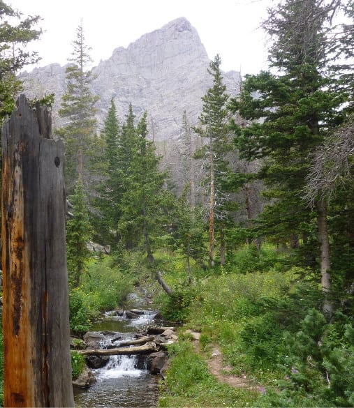 And what a campsite it was! We had a running stream nearby, an impressive 14er, Crestone Needle, in the background … and no wind, no rain, all good!