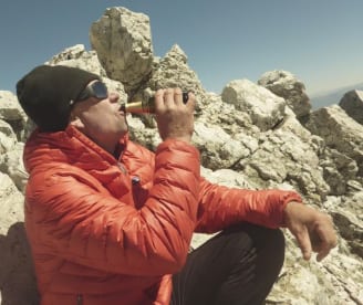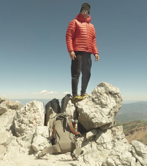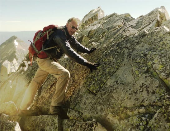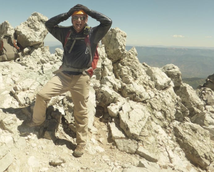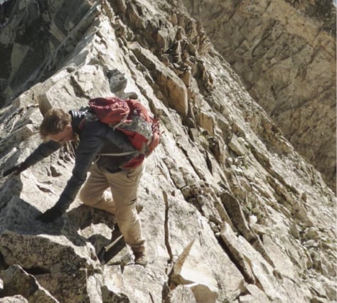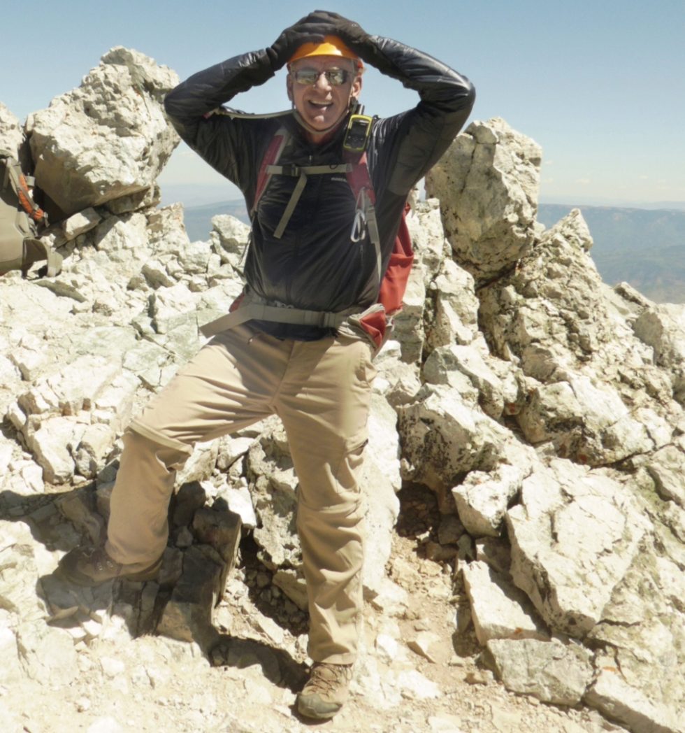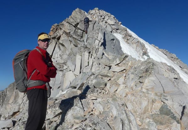 Andy is standing on the very pinnacle of Capitol Peak. His balance even in high wind is remarkable.
