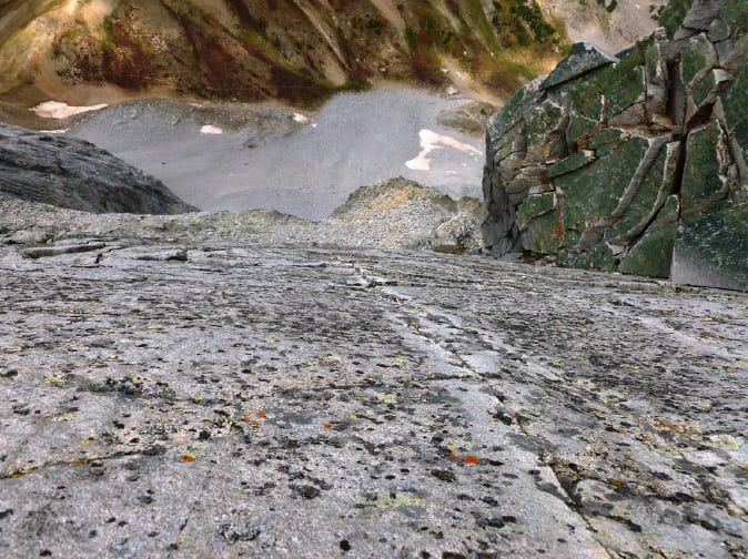 The next few shots show climbing up steep pitches right across and up the North face of Capitol. Exposure and loose rocks are prevalent.