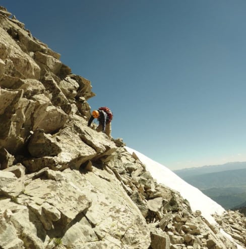 Capitol Peak, to all who know it would agree, is the most challenging and the scariest of the 58 fourteeners in Colorado. It is a soaring, impressive mass of rock with a famous “knife-edge” approach ridge. Its steep and loose rock faces, and a sharp summit, along with its nearby 13er companion peak, K2, offers stunning views across the Maroon Bells-Snowmass Wilderness Area. Capitol Peak not only looks like a big mountain, it climbs like one too.
