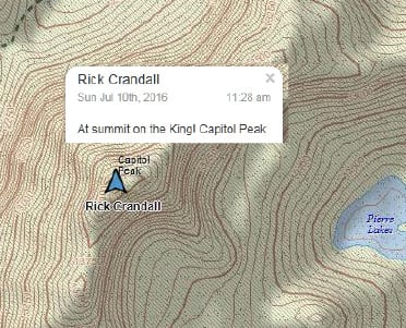 This is my DeLorme InReach satellite transmission from the Capitol summit.