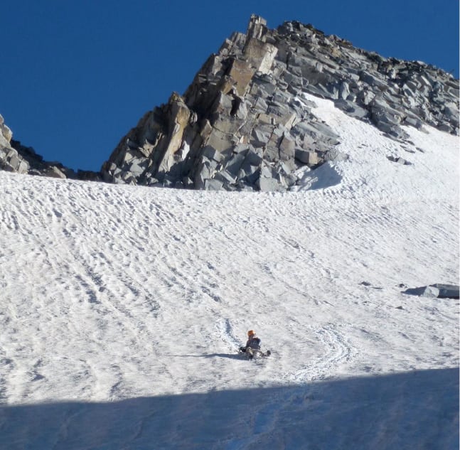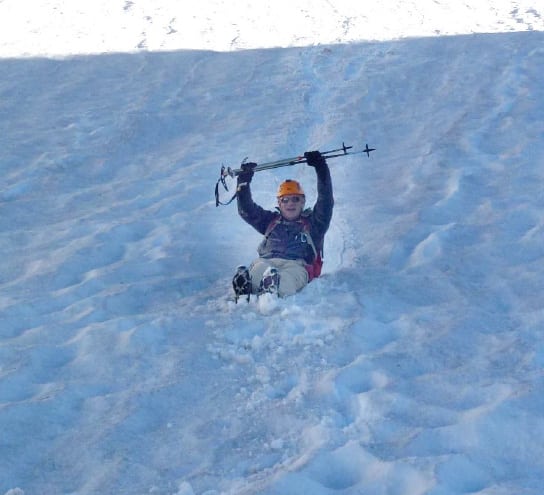 Finally I got to use my ice axe for arresting the speed of the descent, although it was barely needed in these perfectly-pitched slopes.