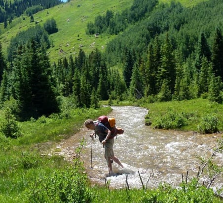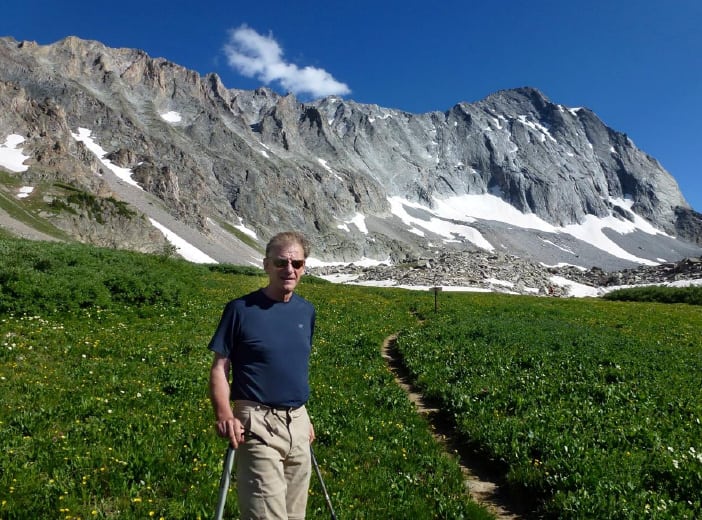 Rick half-way to the Lake where there is the crossing of Capitol Creek – still strong from snowmelt in early July –and it’s cold!
