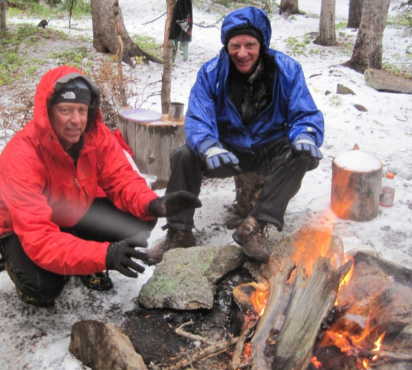 We all went logging and really piled on the wood to overcome the continuing snowfall. We were soaked but happy we were down, we had a fire and some cut logs someone left us to sit on.