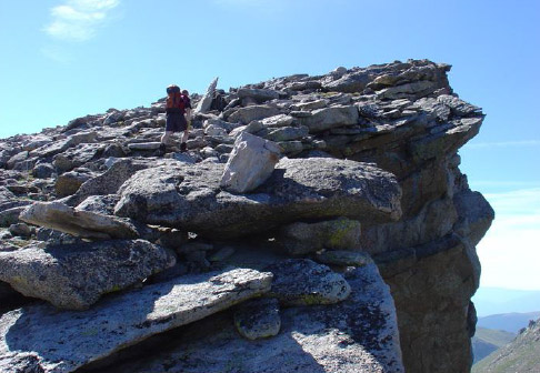 So after taking photos and congratulating each other, we headed back. The return thankfully did not go back over the Sawtooth, rather it stayed high for about a mile (not good being that high for so long in storm conditions) and then descended a steep gully to marshy land far below. There was little wind and the storm cells were moving slowly – that was a good thing.