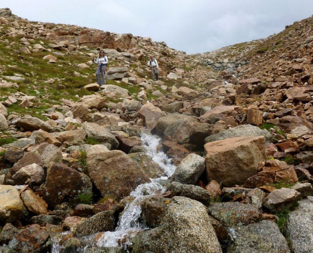 The final stream crossing – this was from the 2011 climb of Mt. Bierstadt with Emme – in all of her 17 fourteeners I’ve lifted her maybe three times. This was one of them because the stream was running strong –she always hated my help.