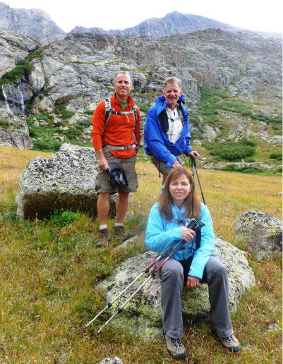 Laura Welch and I, along with Emme, the Crandall’s amazing Australian Terrier who has climbed 17 fourteeners in her ‘career,” first did the ascent to Mt. Bierstadt in July of 2011. At that time we had no designs on the Class 3 Sawtooth traverse to Mt. Evans due to our uncertainty that we had the ability. As it turned out, the weather threatened when we got to the Mt. Bierstadt summit so we wouldn’t have gone on anyway.