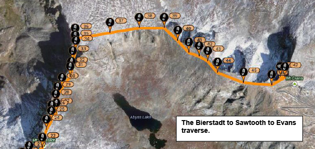 The Bierstadt to Sawtooth to Evans traverse.
