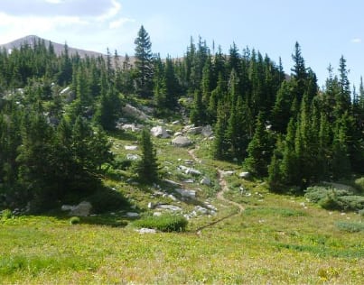 Experienced and youthful climbers could climb Mt. Daly in one day, typically starting from the Capitol Lake trailhead. It’s a long day – 14.4 miles round trip and 4100’ vertical. The hike to Capitol Lake is one of the prettiest in the Aspen area and the Lake itself is a great place to camp for a night. With summer monsoon weather still threatening, but looking like we would at least have a morning clear for climbing, we set out for the Lake with full backpacks for camping.