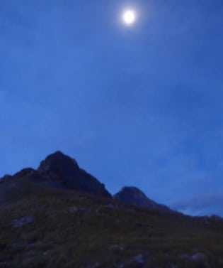 We had a nearly full moon but still needed our headlamps to hike up to the saddle.
