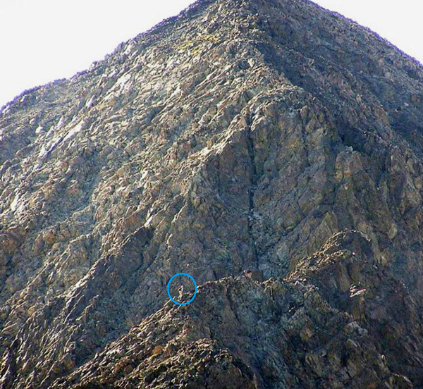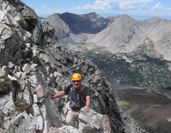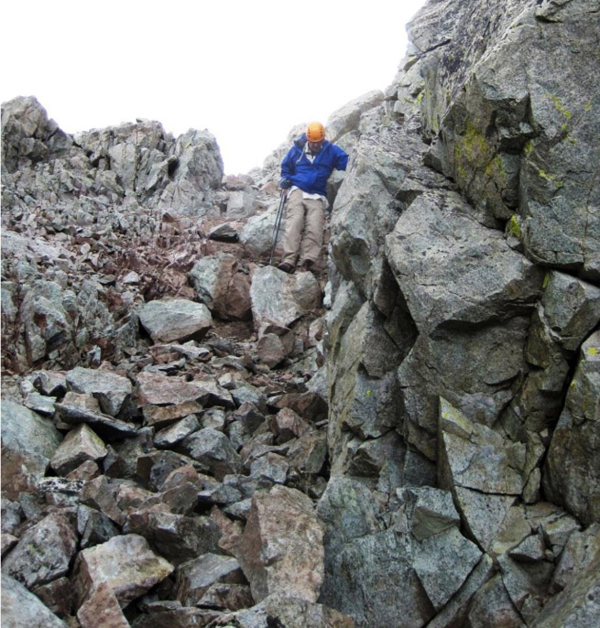 We rock-climbed all the way to the Class 4 wall, and despite Rick Peckham being ex- military para (chute) rescue, we voted not to try once we got up close and personal to it. That meant we had to Class 3 down-climb from the ridge and go up the gully approach – that probably added two hours and a lot of extra effort to the day!