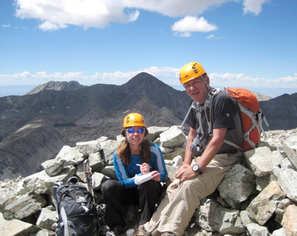 Summit Mt. Lindsey 14,042’ at 12:10pm (above, Laura signing the log)