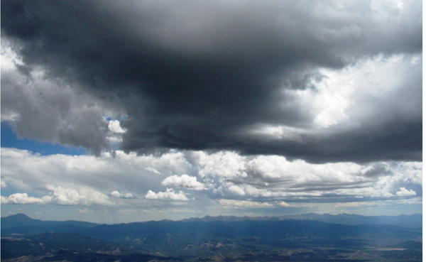 The weather looks good, right?  WRONG!  I looked to the left and up – and that cloud is not a good sight when you are on a 14,000’ summit, plus you have to cross a false summit to get away from exposure. This menace had another worry – going down those steep gullies and rock when wet was not a happy prospect.