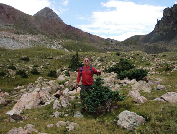 The weather looked great, but it was still early morning. After the first 1000’ of vertical and a few miles we were in sun – and at tree-line. That’s Blanca Peak and Ellingwood Point in the background – two other fourteeners in the Sangre de Cristos.