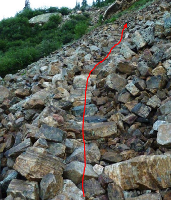 See the natural “steps” now in 2013 as moved into place by the Colorado Fourteeners Initiative.