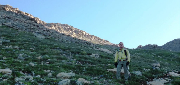 Our plan this time was to get started really early to get to the summit and then to get off the ridge of 14,000’ peaks well before noon to avoid lightening exposure. Rick Peckham and I left Leadville at 4 am and drove my trusty 4Runner off-road in the pitch dark (no moon in sight). We got to the trailhead at 5 am and started to hike the first 1000’ of elevation gain to tree line with headlamps. We chose the North Halfmoon Creek trailhead and Southwest Slope approach because it was steeper (more to our liking) and shorter (8 miles roundtrip instead of 13 miles for a shorter walkout to avoid afternoon storms). There are two route notes included at the end of this story for anyone starting from the North Halfmoon Creek trailhead.