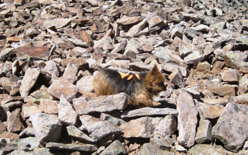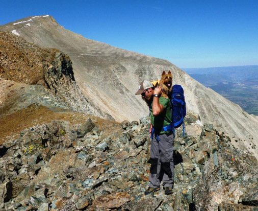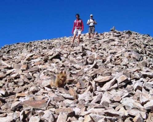My son Brett and I brought our dogs, both having fourteener experience, but turns out this is not the best mountain climb for dogs due to the large, sharp, steep and loose boulders on some of the pitches.