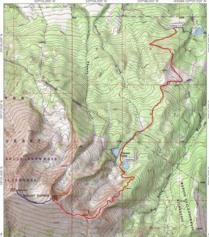 There are little by way of route reports available on Sopris, so this report is a bit more detailed for those who are interested.