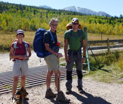 Dianna, me and Brett at the trailhead. Sopris can be seen in the background about 5 miles away.