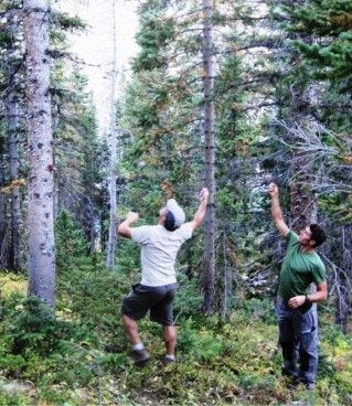 Setting lines from two trees to get the food hanging out of bear-reach away from either tree.
