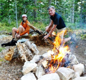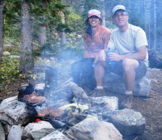 We got to Thomas Lakes at 4:15pm, a 2 ½ hour hike on a good trail, and we selected our campsite for the night. The first orders of business were stringing the bear-proof lines for hanging the food, setting tent and finding and cutting firewood.