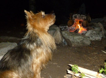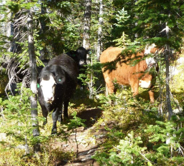 The trees rustled near our campsite – and then we spotted 6 or 7 cows descending upon us, not 20’ away. Emme and Amos kicked into action – barked and backed them off – which they had to do several times on into the darkness of night.