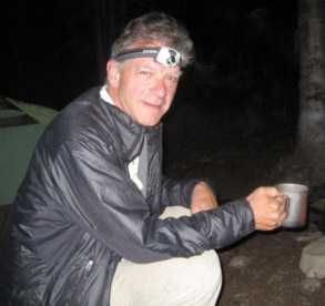 Dianna and Rick watching over the food and …me enjoying the wine, headlamp at the ready.