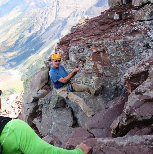 A photo collage of Rick C. climbing the famous and highly visible Maroon ledges.